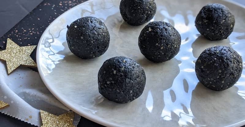 Soon it will be the longest night of the year - December 21st. I created this recipe in the winter of 2020. These dark chocolate orbs contain activated charcoal to bind toxins and can help with gas and bloating from holiday meals. A lone macadamia nut is a tasty surprise and also a reminder that we all hold a special light within. All natural ingredients, no baking needed.